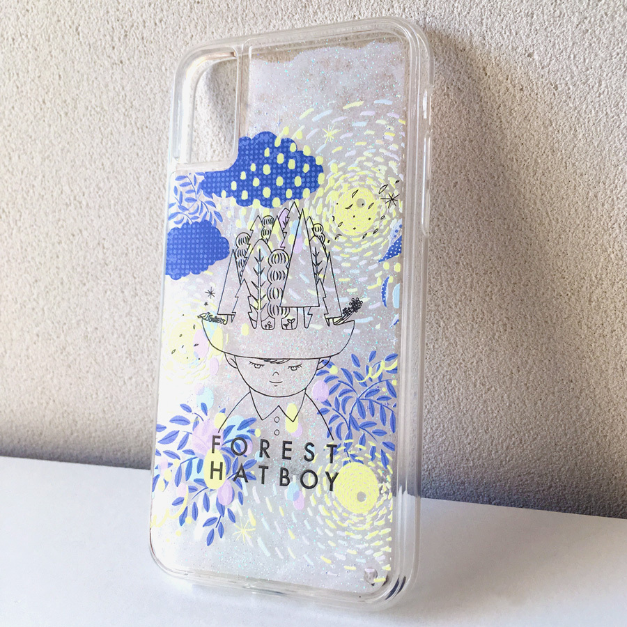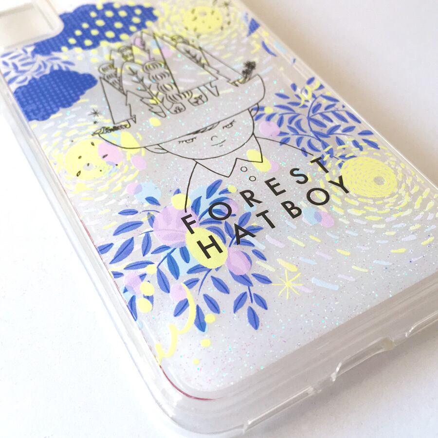 ホワイトのキラキラとオリジナルのイラストレーションを合わせてスマホケースにしました。