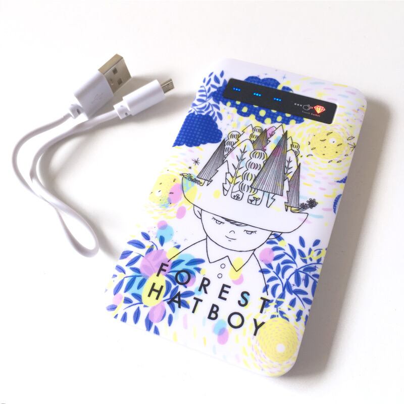 ◇ オリジナルのイラストレーションを合わせたモバイルバッテリーの受注販売。